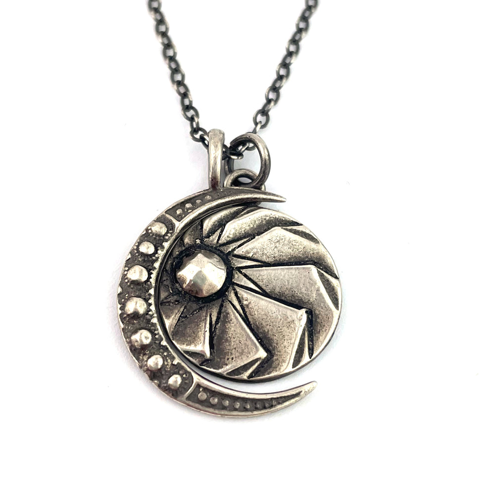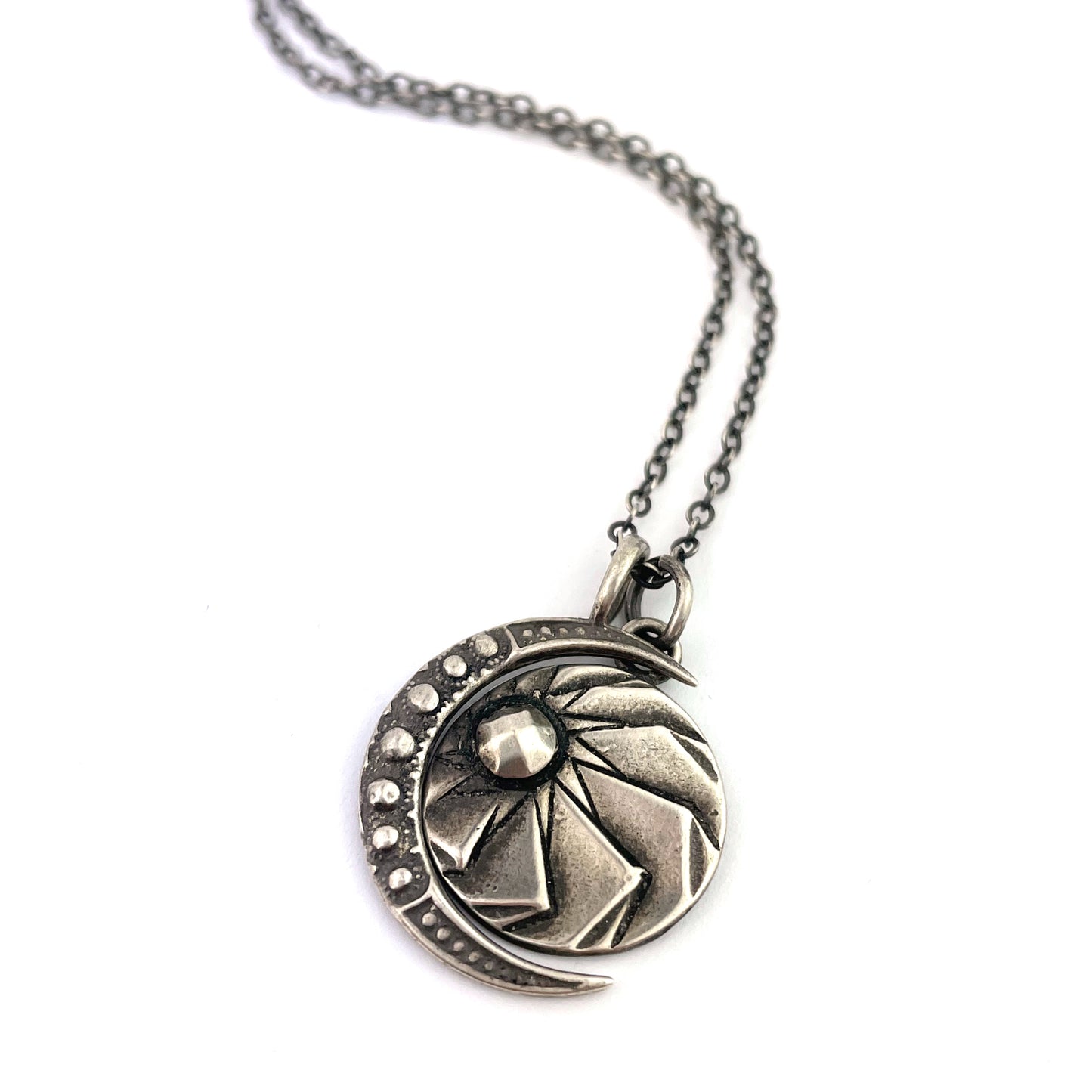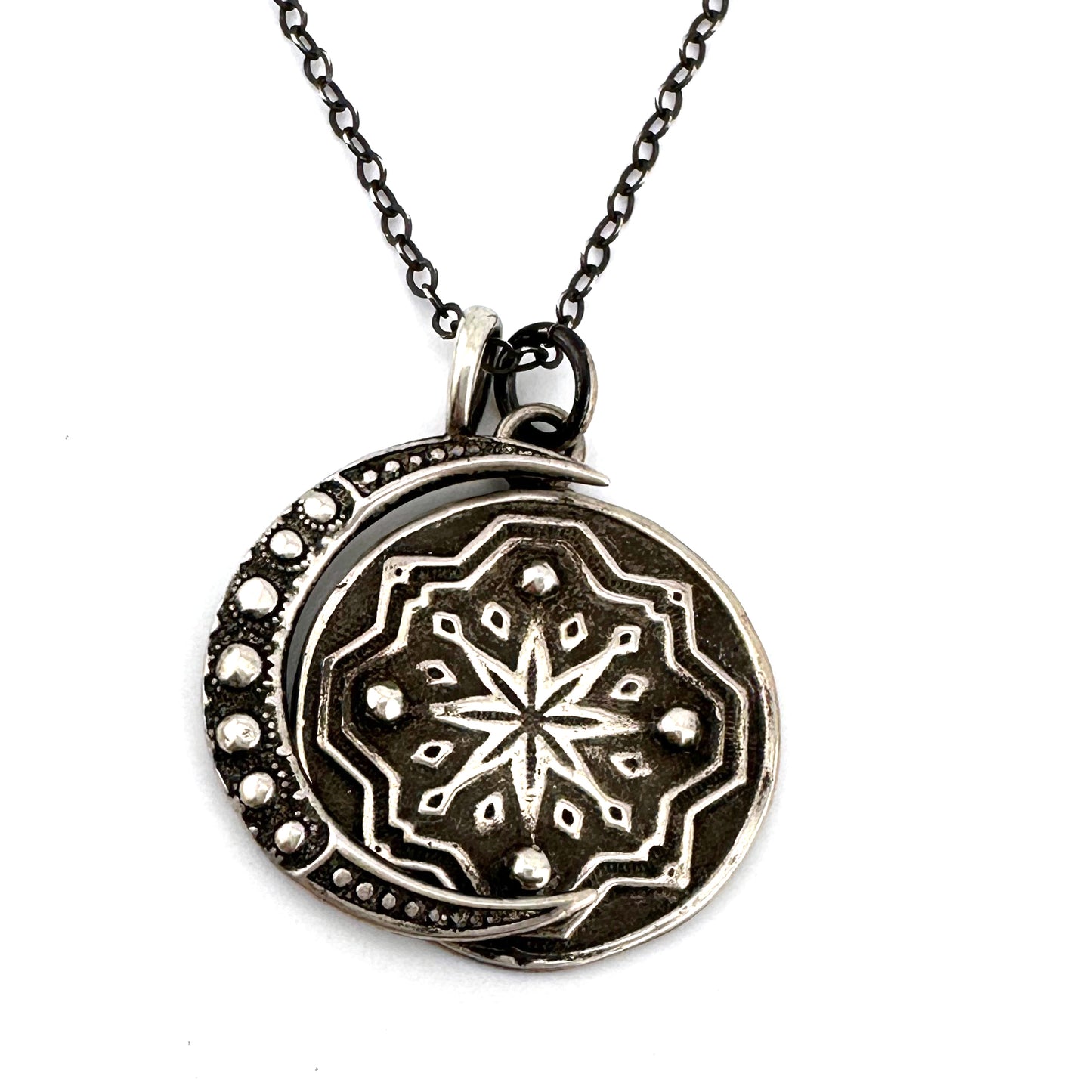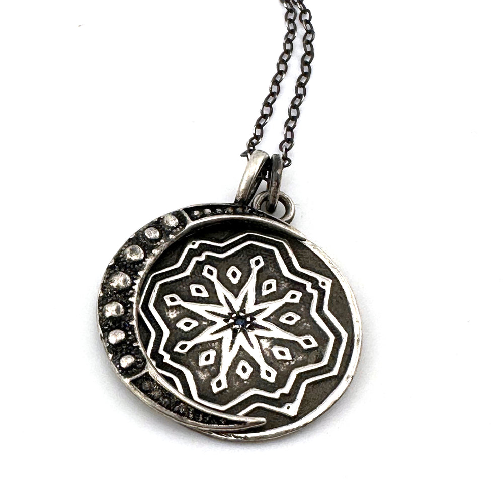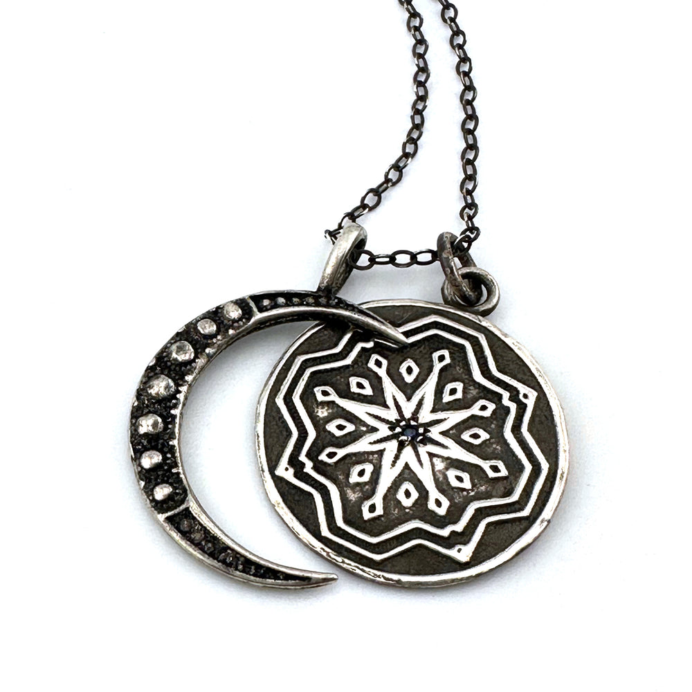 COMPASS MOON Necklace Set - Silver Blue Sapphire