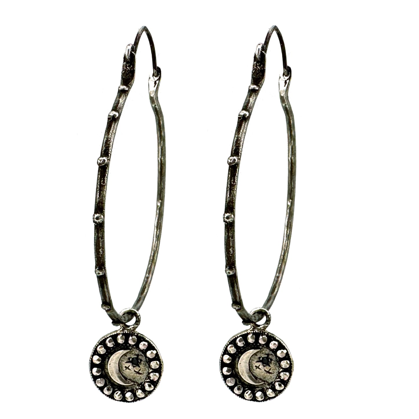 MOON Large Hoops - Riveted w/ Black Diamonds