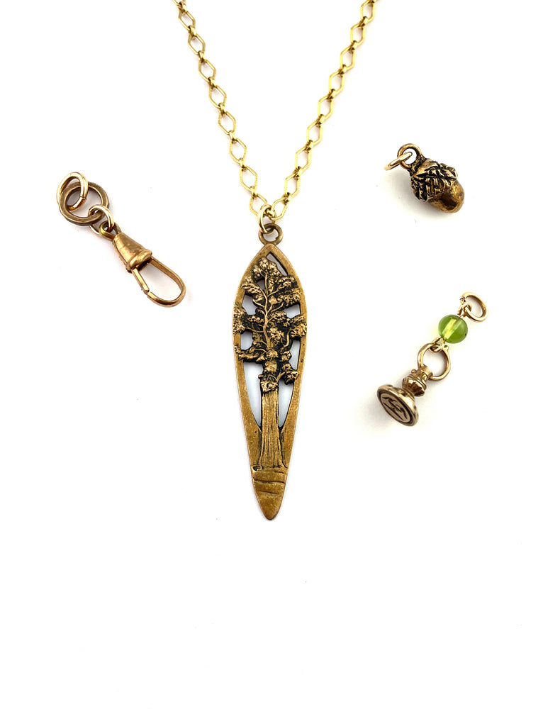 Vintage charm and talisman jewelry made from vintage treasures in recycled bronze and sterling silver.