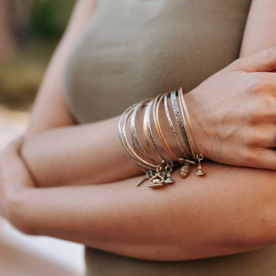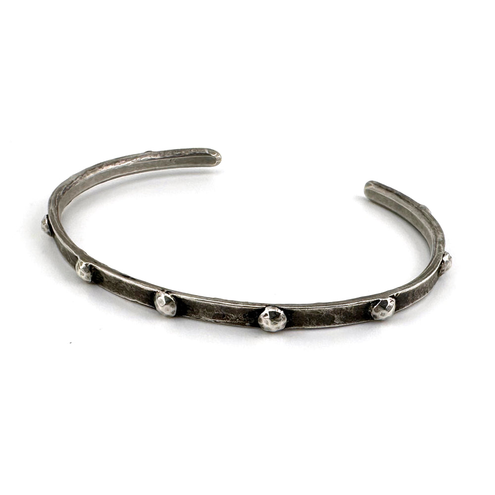 Our signature cuff bracelets accented with nine hammered Victorian rivets on granite stone texture - hand cast in solid sterling silver. Made to stack.
