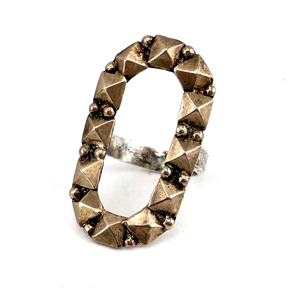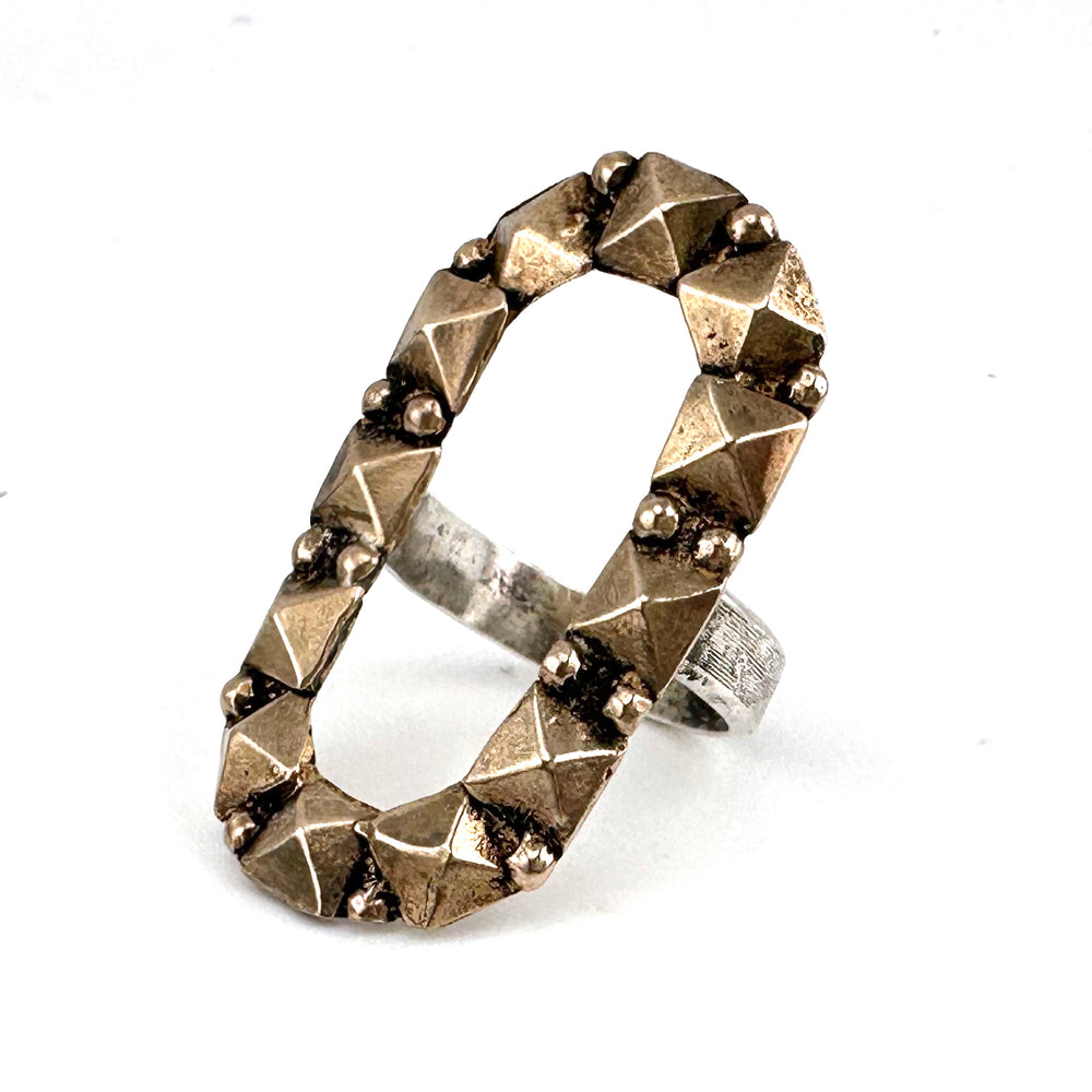 Our favorite antique buttons cast in sterling silver and bronze set on handmade sterling silver rings.