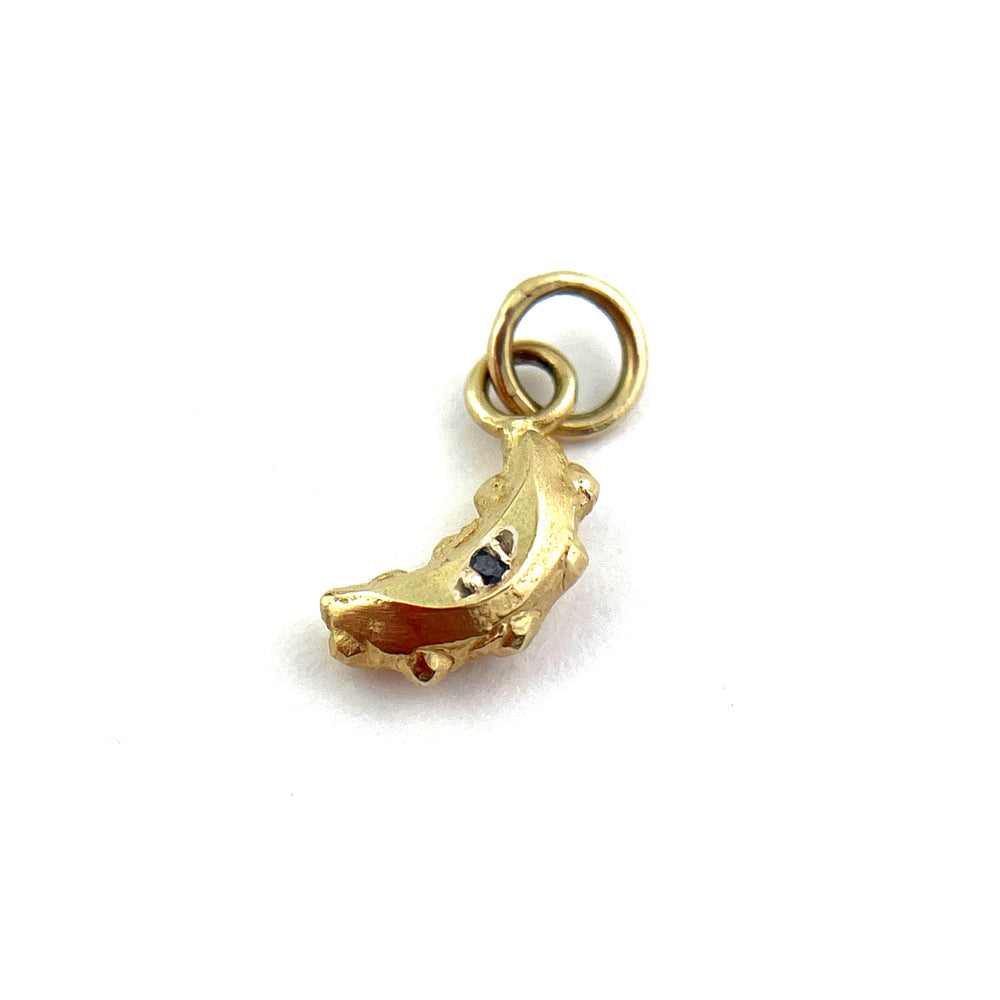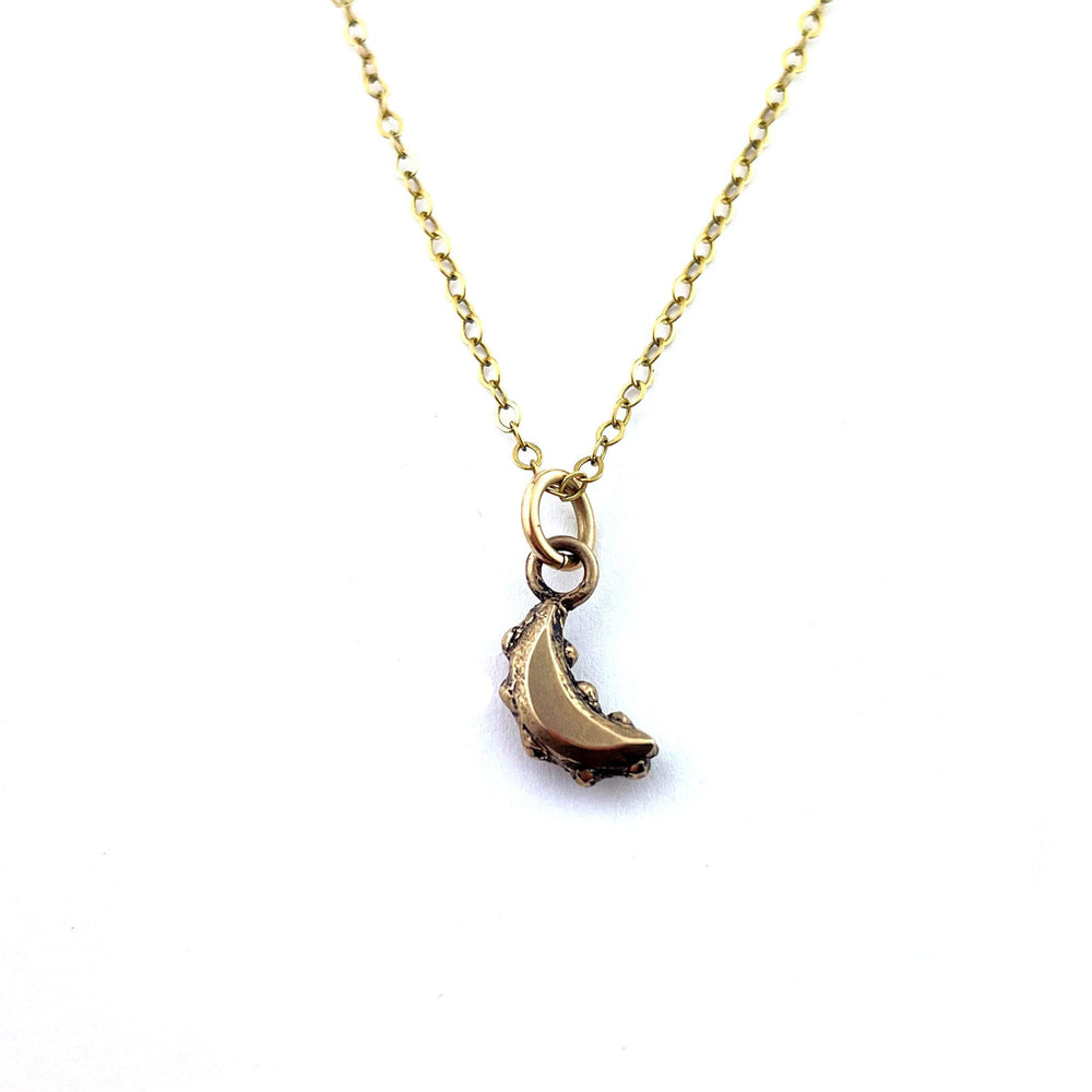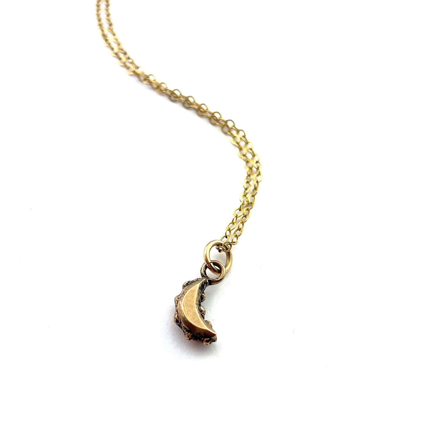 The most glorious petite crescent moon charm, handmade from Victorian hammered rivets rivets. How lovely to think that these tiny artifacts were once part of a history of tight corsets are now a story of bold people like us. Unbuttoned and unbound.