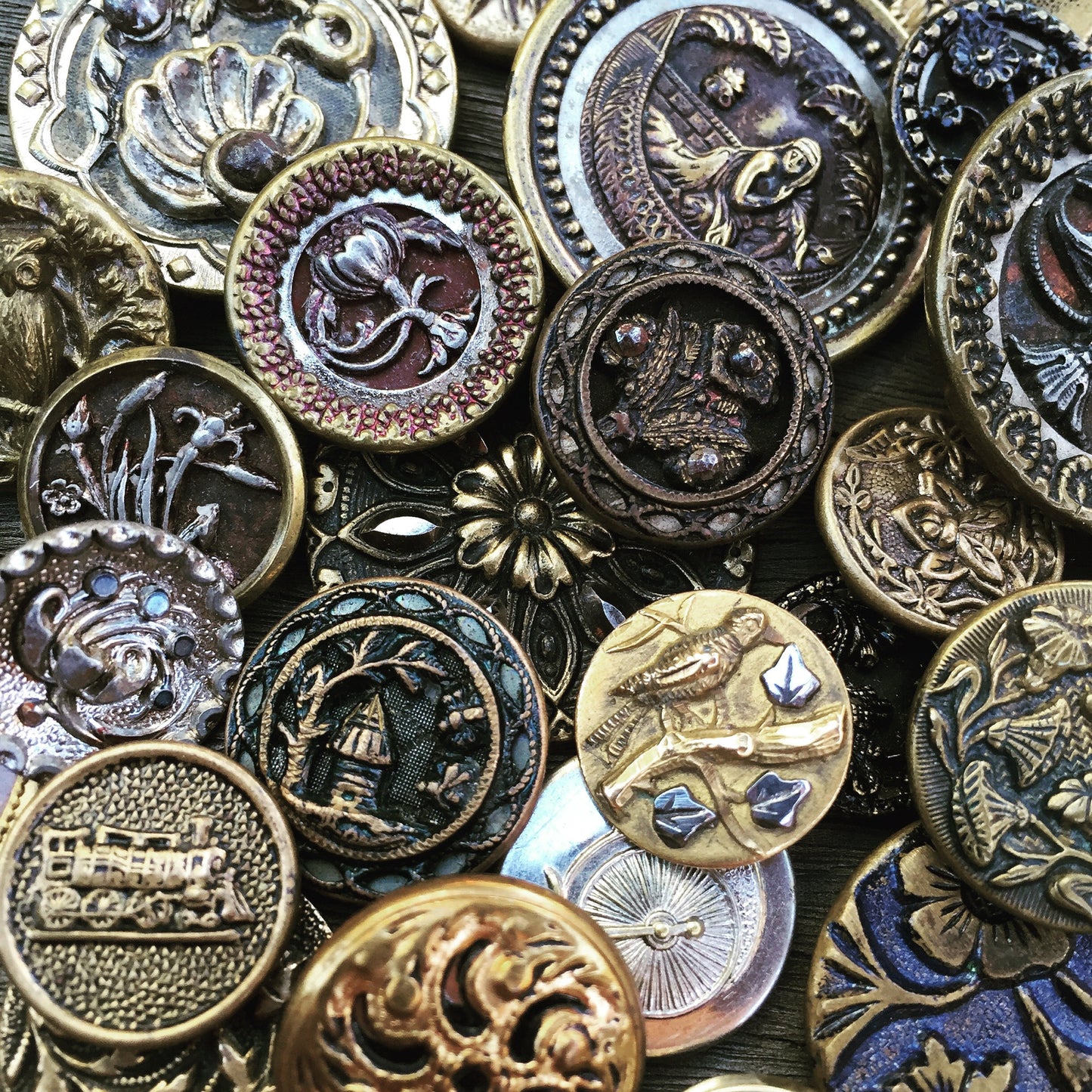 Explore an entire world full of blossoming delights in this Victorian button earring adorned with an 18th century cut steel rivet. In the foreground, a honey bee has alighted on a flower - you can almost smell the fragrance of blossoms. Our button earrings are cast in sterling silver from original buttons in our collection.