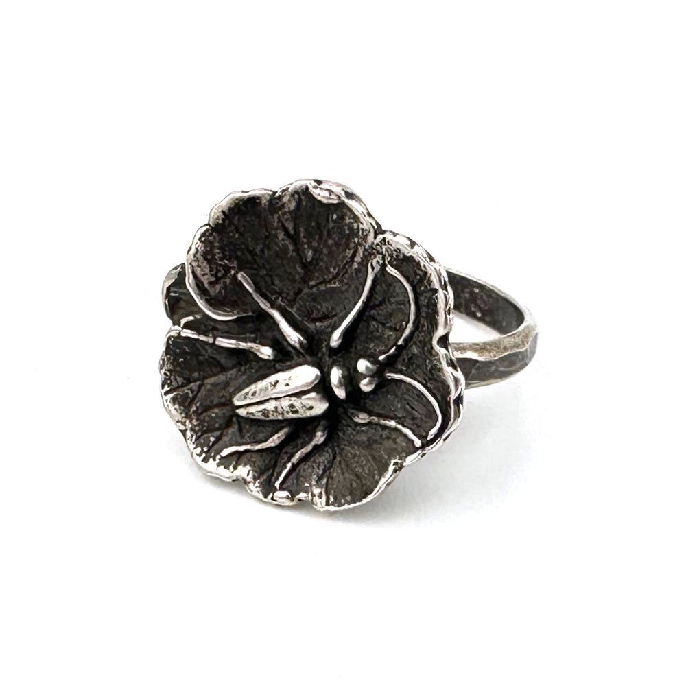 Our Firefly or Lightning Bug ring is made from a vintage button cast in solid sterling silver set on a handmade hammered sterling silver band.