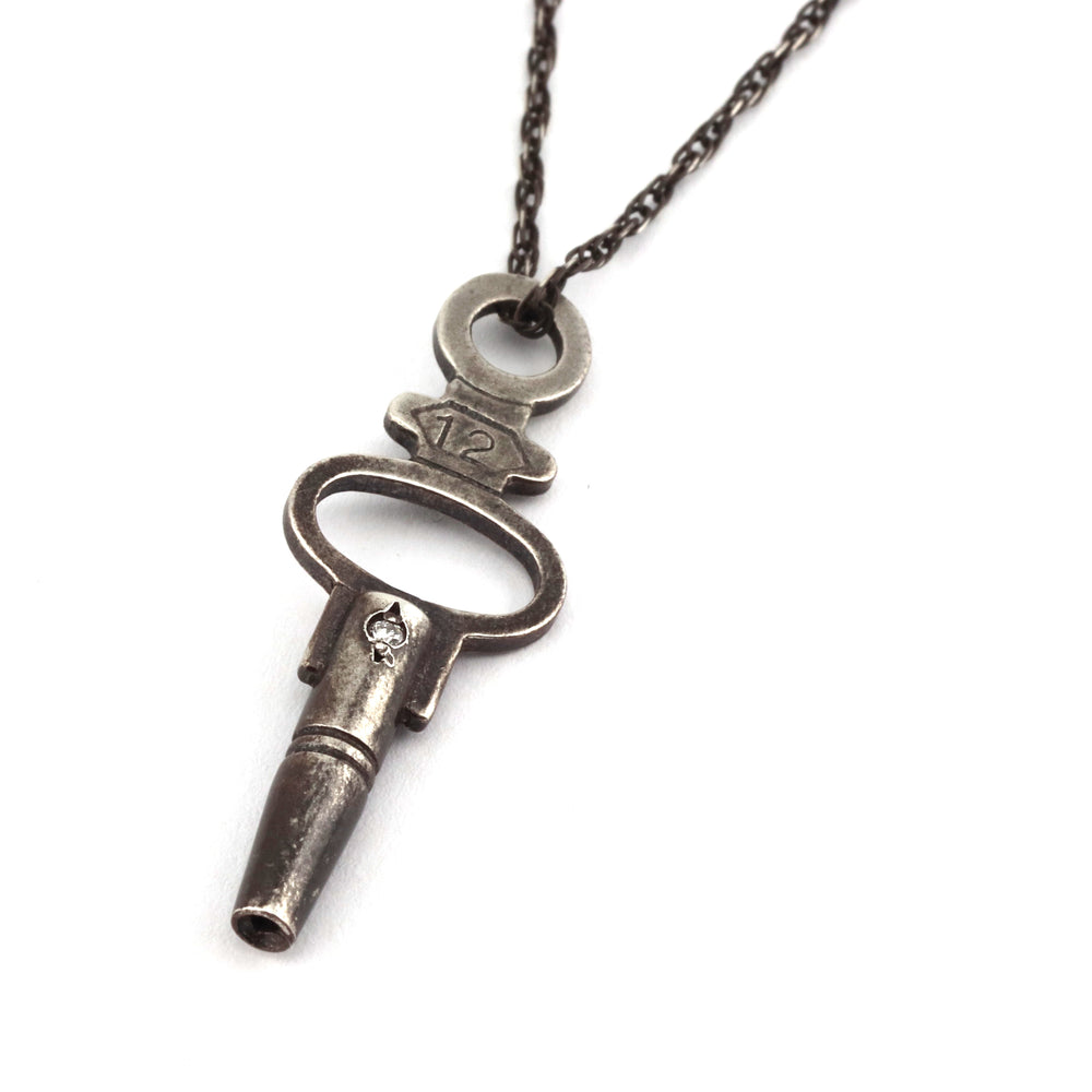 Our "Time Flies" antique key necklace is hand cast in solid sterling silver set with a white diamond for a touch of shimmer. A wonderful love token or historical keepsake. Perfect for layering.