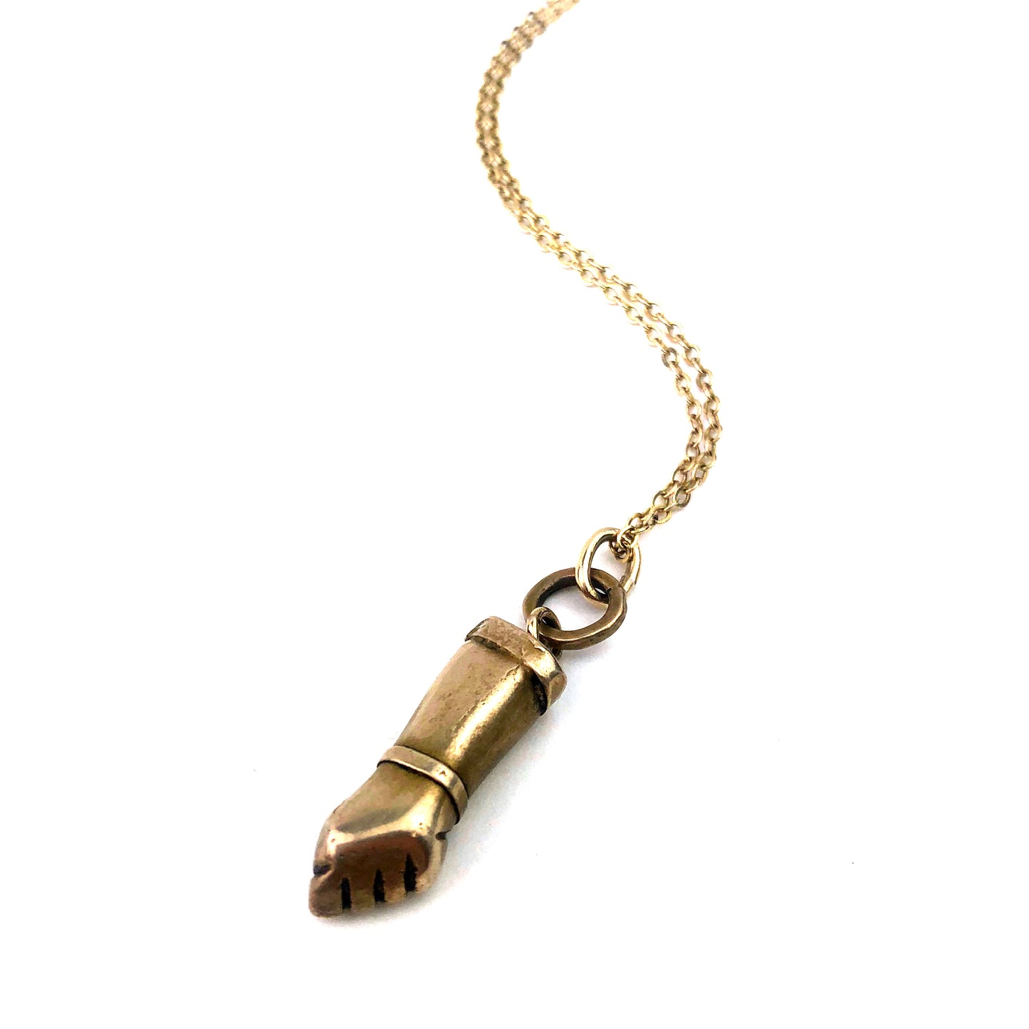 Our Mano Figa, also known as Mano Fico, "the fig sign," is an ancient gesture that goes back to Etruscan and Roman times in the Mediterranean. It is said that the sign originates from an ancient yoni symbol. It has been used as a charm for health and protection for centuries.
