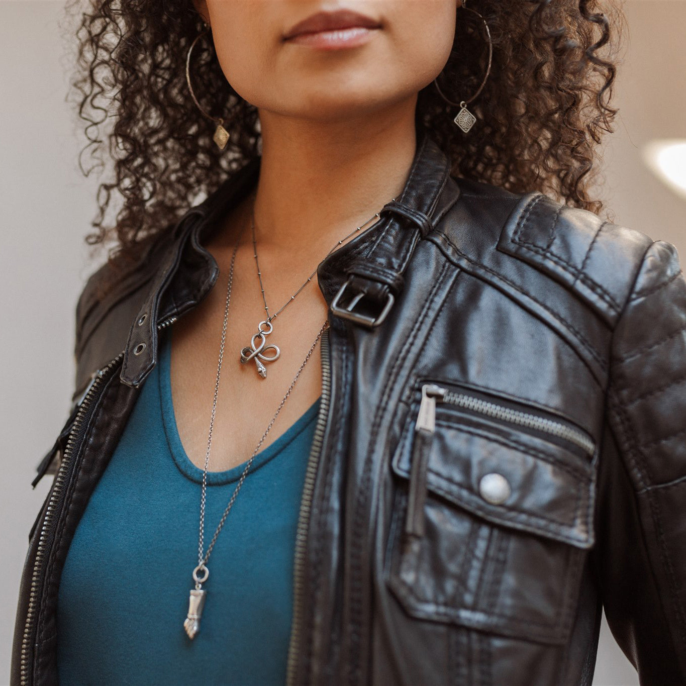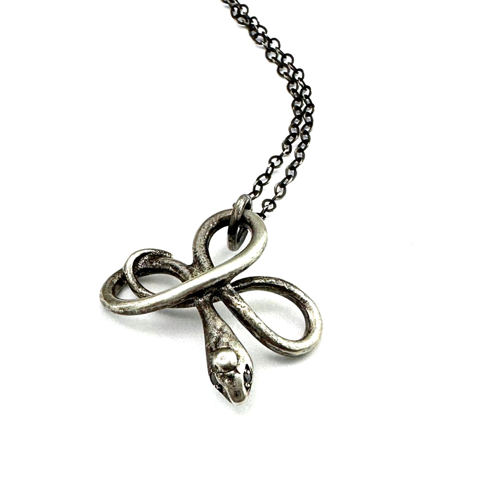 Our curvaceous snake pendant is a symbol of power and in the Victorian era were treasured as gifts of wisdom and commitment.